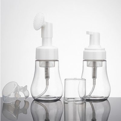 150ml Plastic Cosmetic Facial Cleanser Foam Soap Dispenser Bottle with Brush for Face Wash
