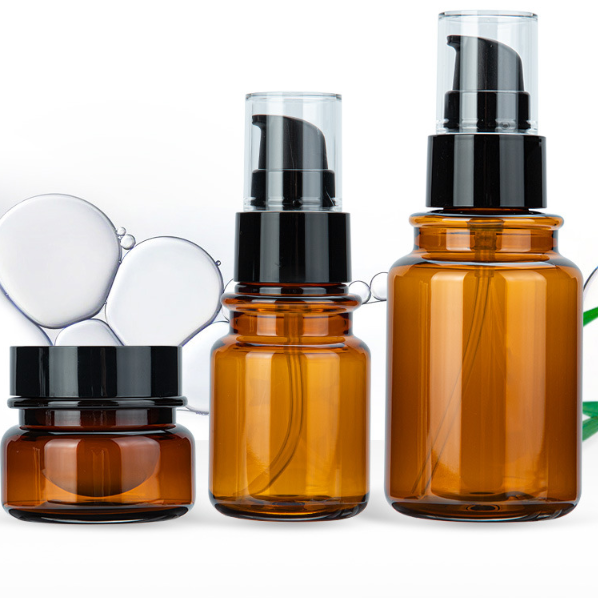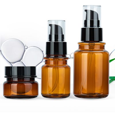 Cosmetic set clear brown bottle