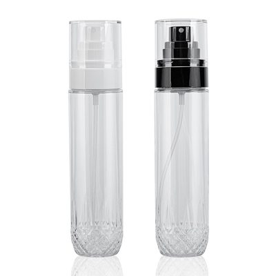 Diamond carved fine mist PET plastic cosmetics bottle transparent